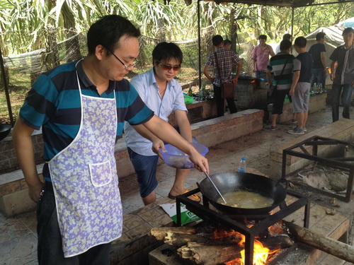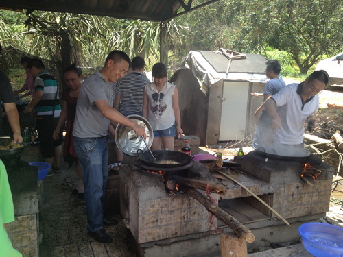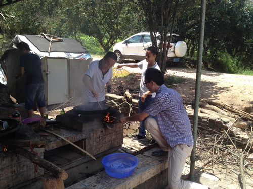 在一片歡聲笑語(yǔ)中,大家結(jié)束了上午的拓展訓(xùn)練,中午的午餐是需要根據(jù)農(nóng)莊所提供的食材,大家自已去拾柴,利用農(nóng)莊搭建在室外的灶臺(tái),自己動(dòng)手生火,自己做飯。大家分工合作,拾柴的拾柴,洗菜的洗菜,切菜的切菜,炒菜的炒菜,看包的看包,各盡所長(zhǎng),自食其力,其樂(lè)無(wú)窮。驚奇的發(fā)現(xiàn),原來(lái)我們公司的廚神居然都是男神們!女同胞們,你們有何感想?