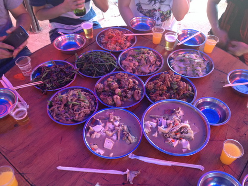終于,美味的午餐端上了桌面,大家分組圍坐在一起,大快朵頤。同樣的食材,不同的味道,你嘗嘗我們組的美味,我嘗嘗他們組的佳肴,大家歡聲笑語(yǔ),好不融洽。