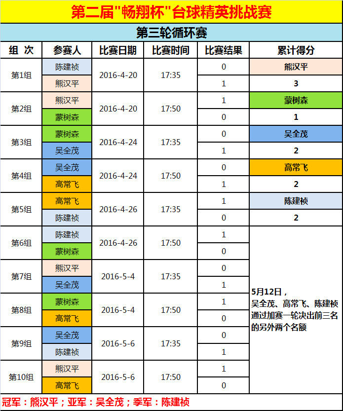 最終來自計劃部的熊漢平,在首輪落空、少賽一場的情況下,在后續(xù)比賽中逐輪力克對手,“一黑到底”,最終奪得了本次挑戰(zhàn)賽的冠軍。來自裝配組的吳全茂獲得亞軍,來自數(shù)沖組的陳建禎獲得季軍。而本次比賽的奪冠大熱門李穩(wěn)超、謝海、蒙樹森等人相繼被淘汰出局,也成為了本次比賽的幾大看點,暢翔可謂是人才輩出,高手全都在民間啊。